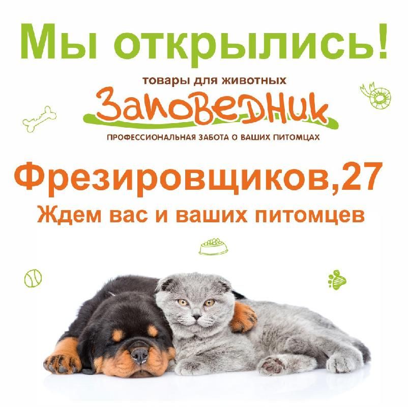 Друзья,мы стали еще ближе к Вам! Открылся зоомагазин "Заповедник" на Фрезировщиков 27 тел. 8 (982) 700-13-61
