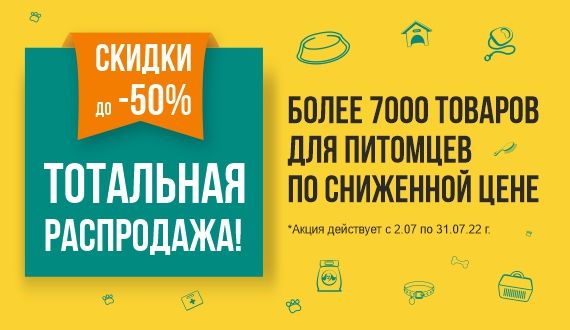 С 1 июня стартует ТОТАЛЬНАЯ РАСПРОДАЖА: более 7000 товаров для питомцев по сниженной цене!